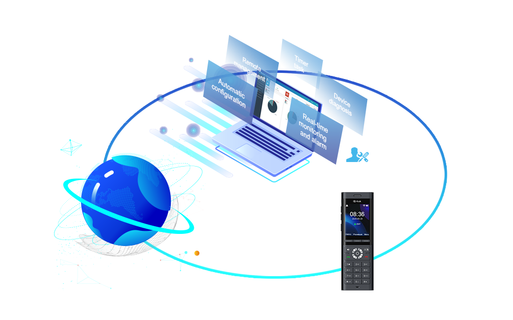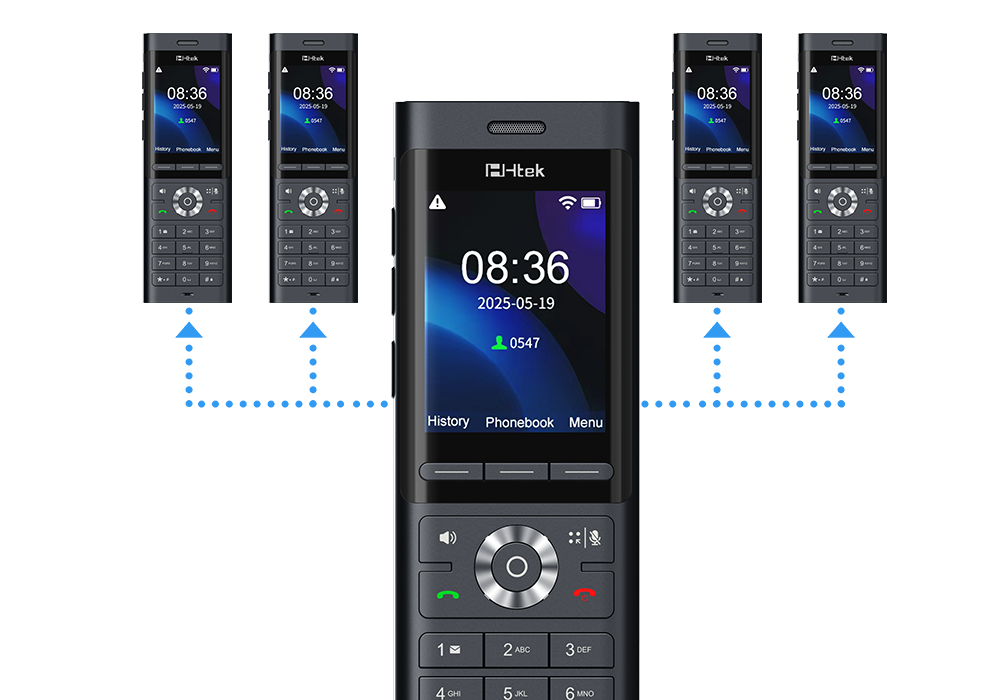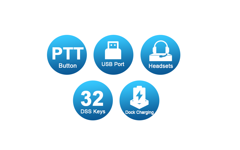 PTT Button for one-touch intercom and multicast paging;USB Port for headset, system recovery & upgrade;Wireless & wired headset support (3.5mm / USB-C / Bluetooth 5.4); 6‑way local conferencing;10,000 local contacts;32 Programmable DSS Keys;Dock charging and USB Type-C charging.