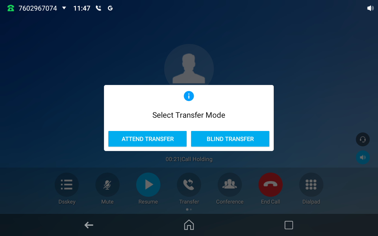 4. If you select Blind Transfer, the call will be transferred to the target number immediately.
